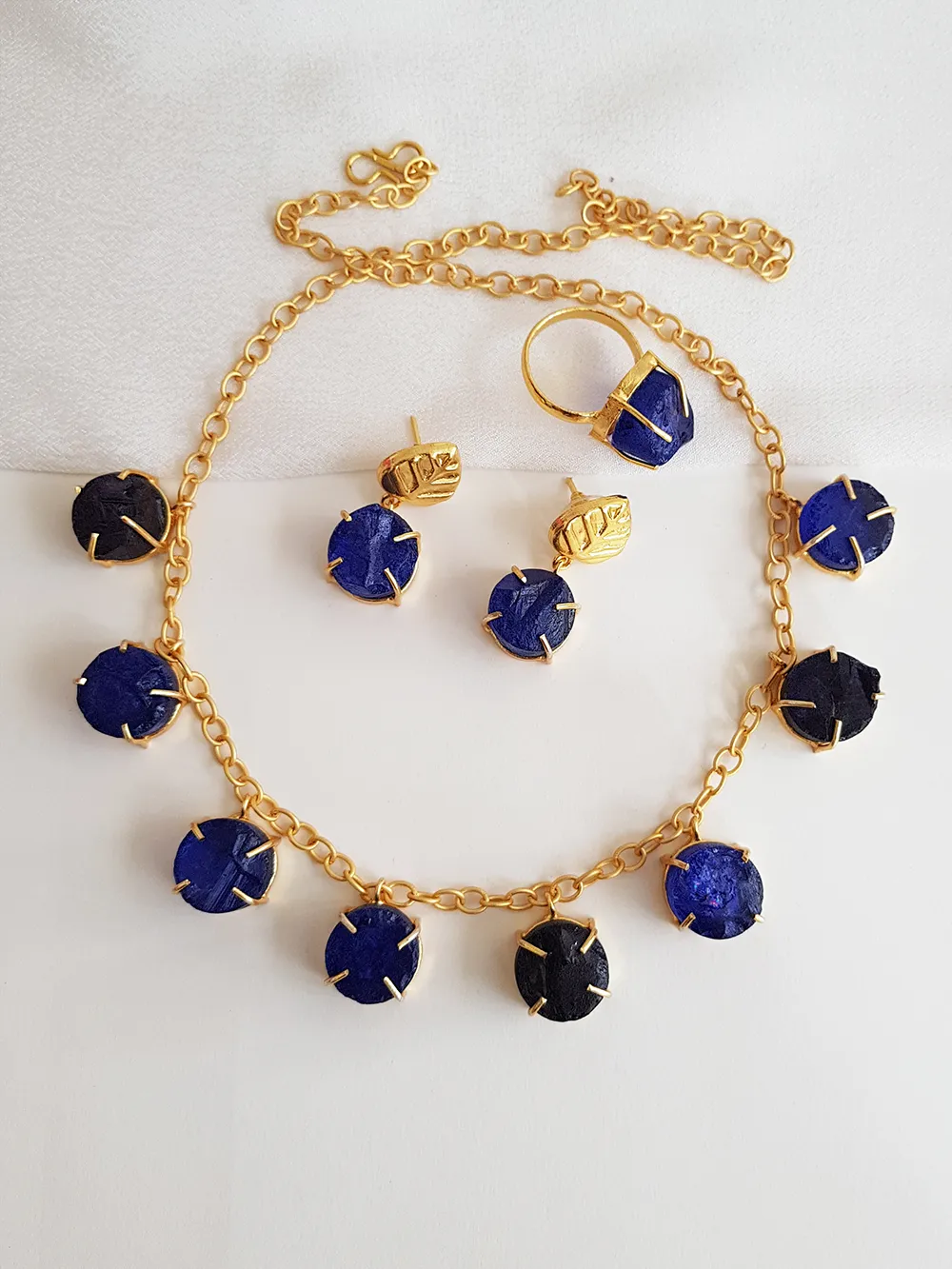 NATURAL STONE NECKLACE-A874 BLUE
